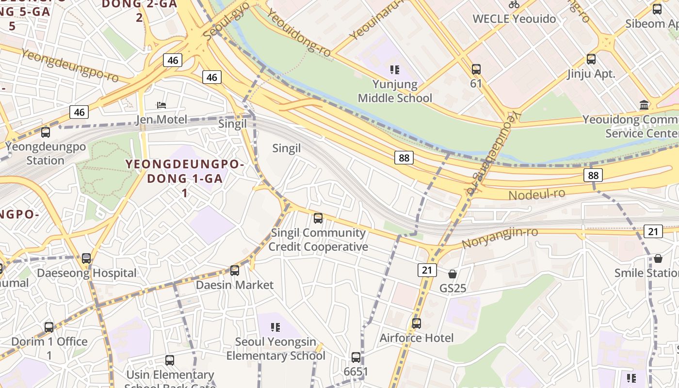 The hotel is located in a popular area of Seoul, within 6 km of the huge museum "War Memorial of Korea" and 2.3 km from the Boramae Park. This Seoul hotel is also within 25 minutes' walk of such natural sights as the Expansive Seoul Color Riverside Park. The six permanent exhibition galleries "National Museum of Korea" lies approximately 7 km away, while Daebang tube station is not far from the Celib Yeoui Seoul. Ogeori bus stop is situated nearly 5 minutes' walk from the accommodation.